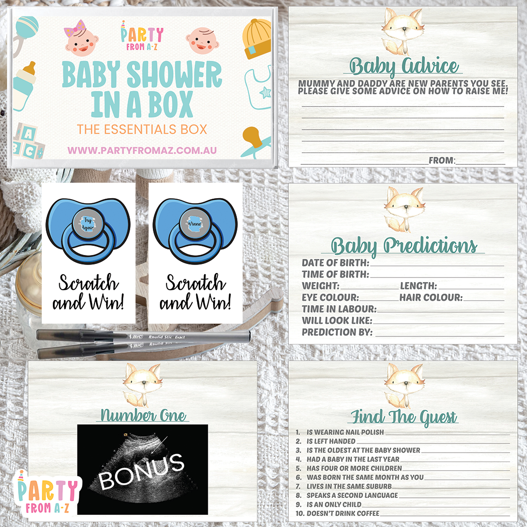 Baby Shower In A Box "The Essentials Box" GAMES, ADVICE & PREDICTION CARDS