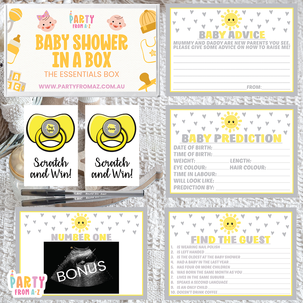 Baby Shower In A Box "The Essentials Box" GAMES, ADVICE & PREDICTION CARDS