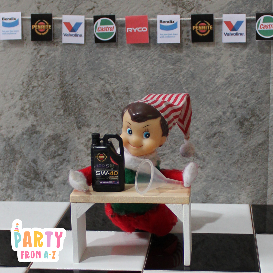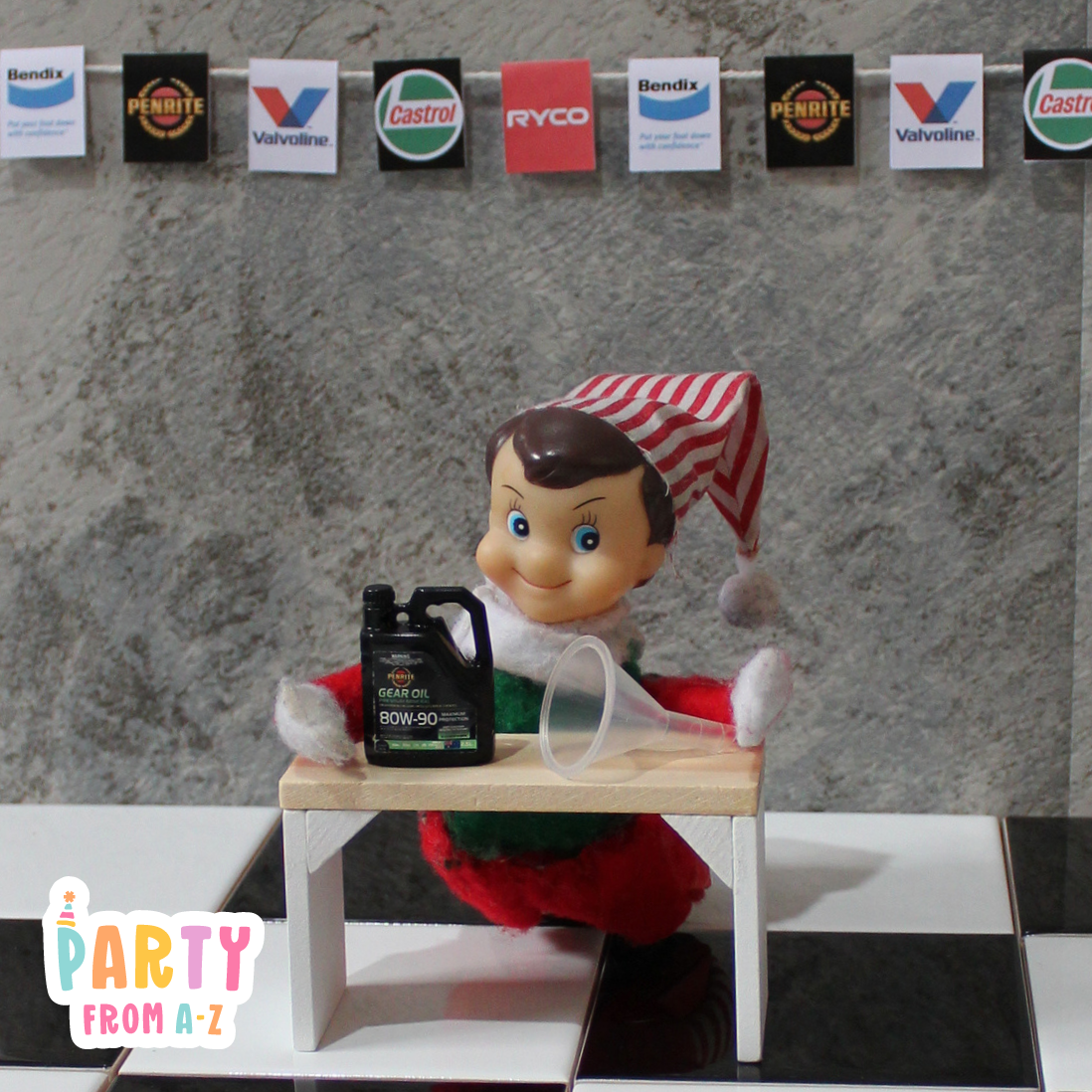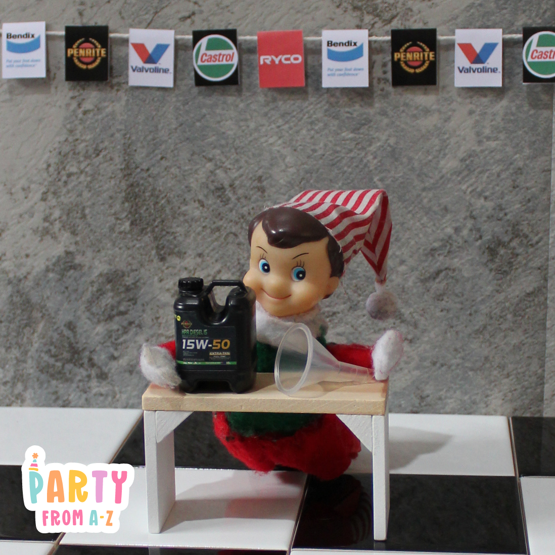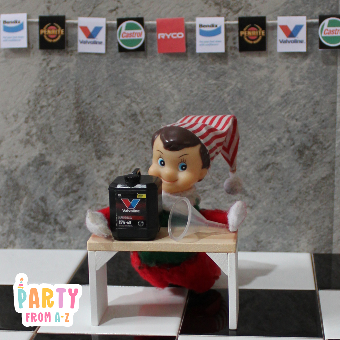 Elf Antics Props - Mini Workshop Themed Oil and Parts Props