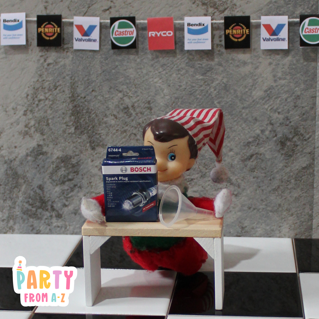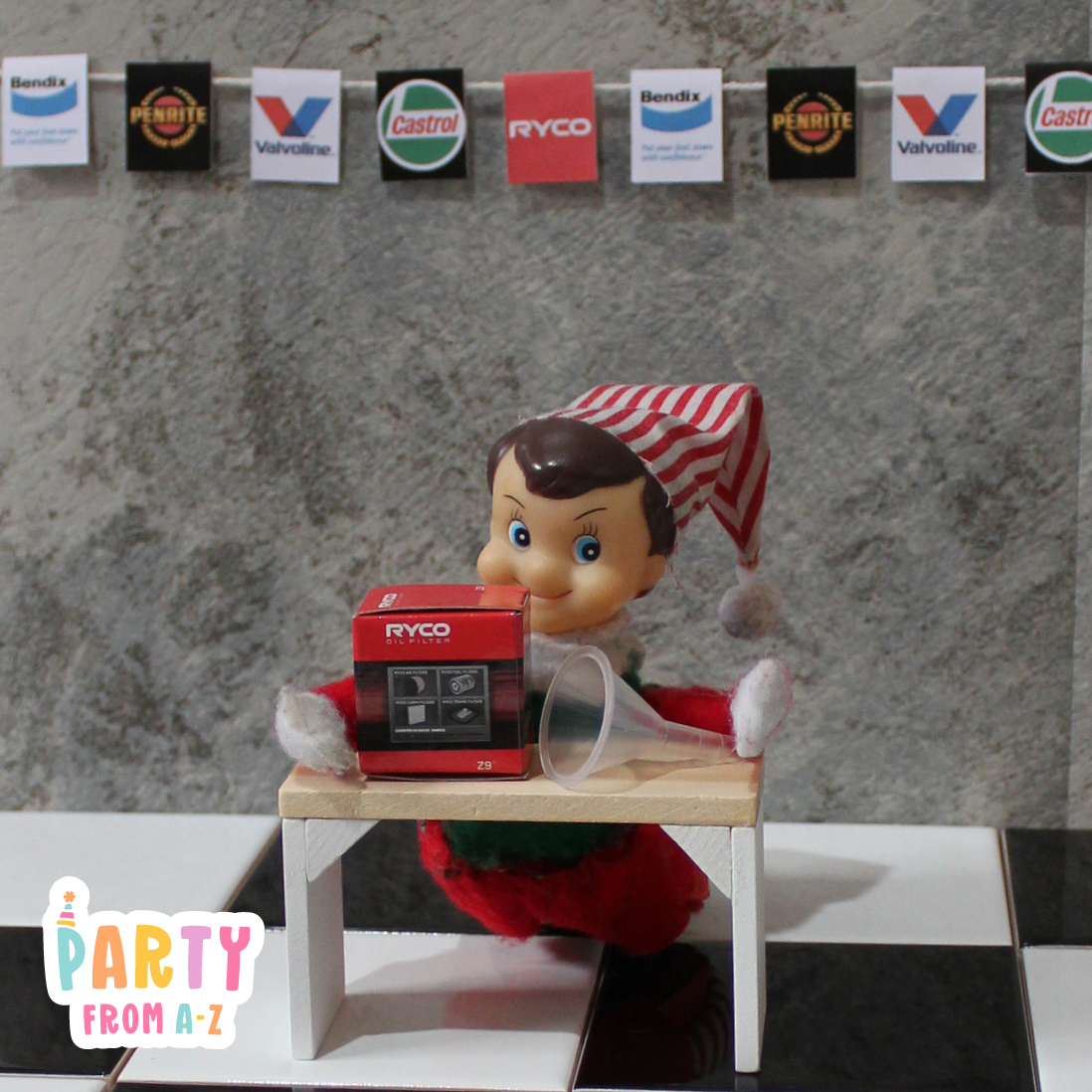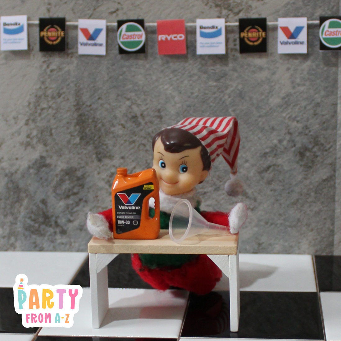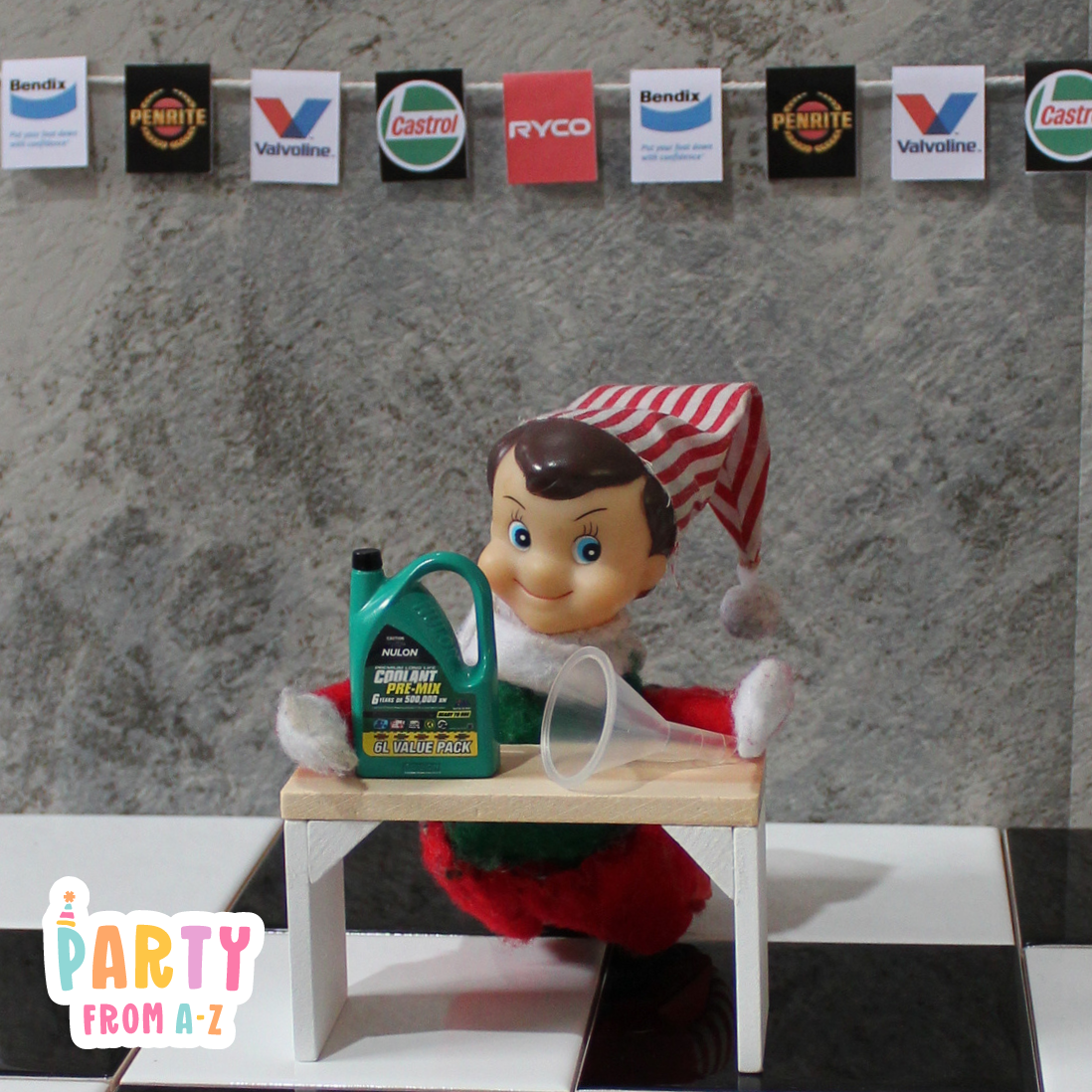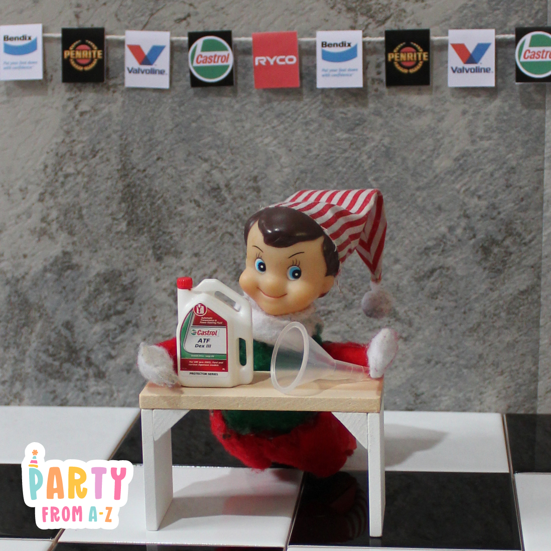 Elf Antics Props - Mini Workshop Themed Oil and Parts Props