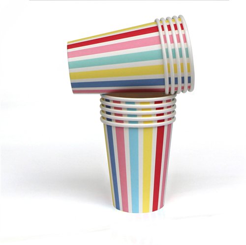 Rainbow Stripe Paper cups - each pack includes 10 cups, that hold 250mls.
